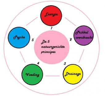 De vijf natuurgerichte principes zorgen ervoor dat wij , u als cliënt op een holistische wijze benaderen. De diagnose en behandelmethode worden pas vastgesteld als ieder van deze vijf principes in onderstaande volgorde zijn doorlopen. Hierbij wordt er vanuit gegaan dat energie de basis is voor het functioneren van het menselijk lichaam. Zonder energie, kunnen de overige vier principes niet functioneren. Voor alle principes geldt een duidelijke prioriteitsrangschikking; een principe kan niet functioneren indien de werking van het voorgaande principe niet optimaal is.